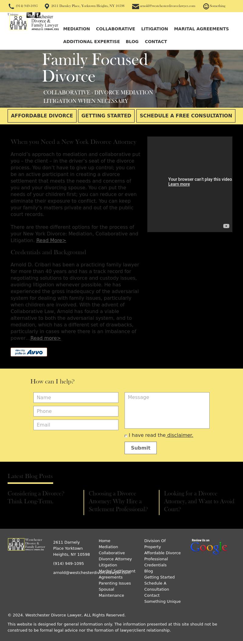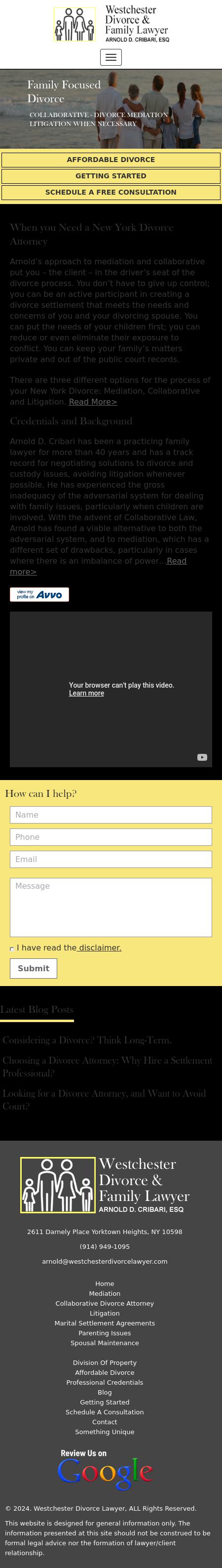 Arnold D. Cribari, Jr. Westchester Divorce Lawyer | Collaborative Law Attorney | Arnold D. Cribari Divorce lawyer experienced in mediation, collaborative and litigation. Saturday Appts. Top well-respected divorce attorney and will guide you through the divorce process.