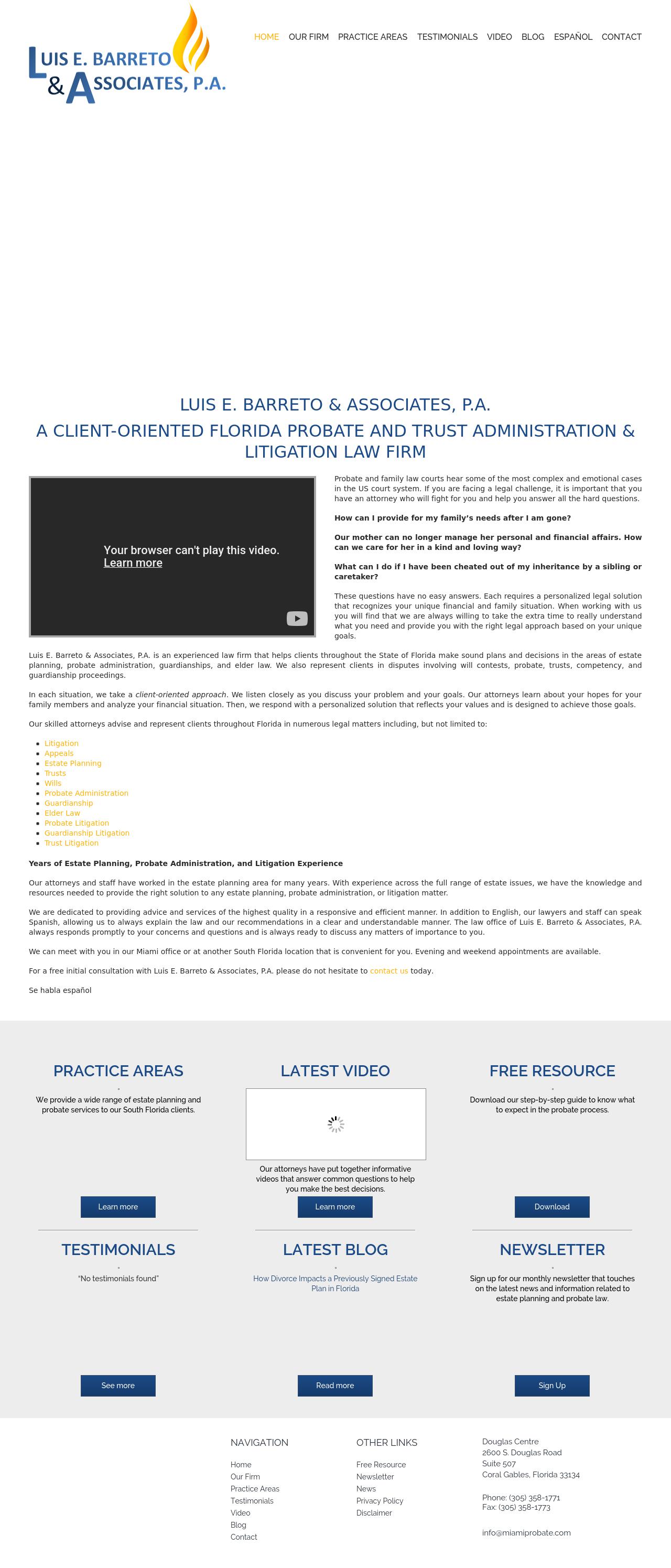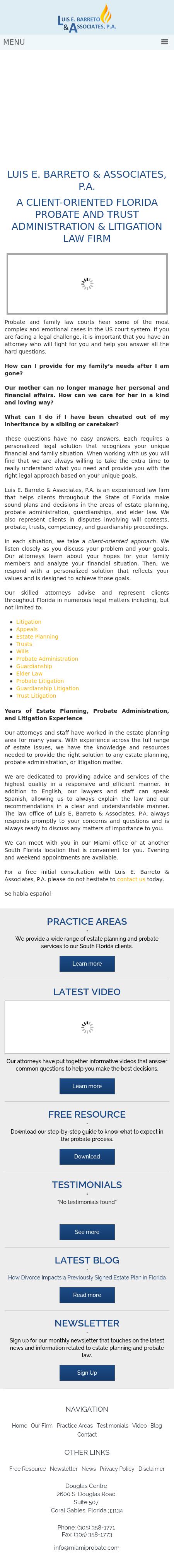Barreto & Romero, P.A. Probate & Estate Administration Lawyers South Florida Will Contest Attorney | Luis E. Barreto & Associates, P.A. | Florida Keys The attorneys at Luis E. Barreto & Associates, P.A. in Miami, Florida have the knowledge and resources needed to provide the right solution to any estate planning, administration, or litigation matter.