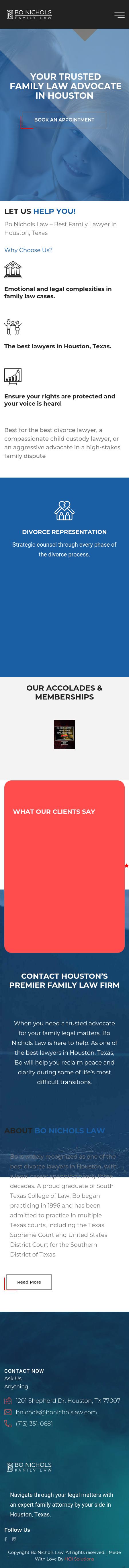 Bo Nichols Law Firm Houston Family Law Attorney | Divorce and Child Support Harris County TX Call 713-364-0540 to discuss any family law issue in or near Houston, Texas, with our attorney.