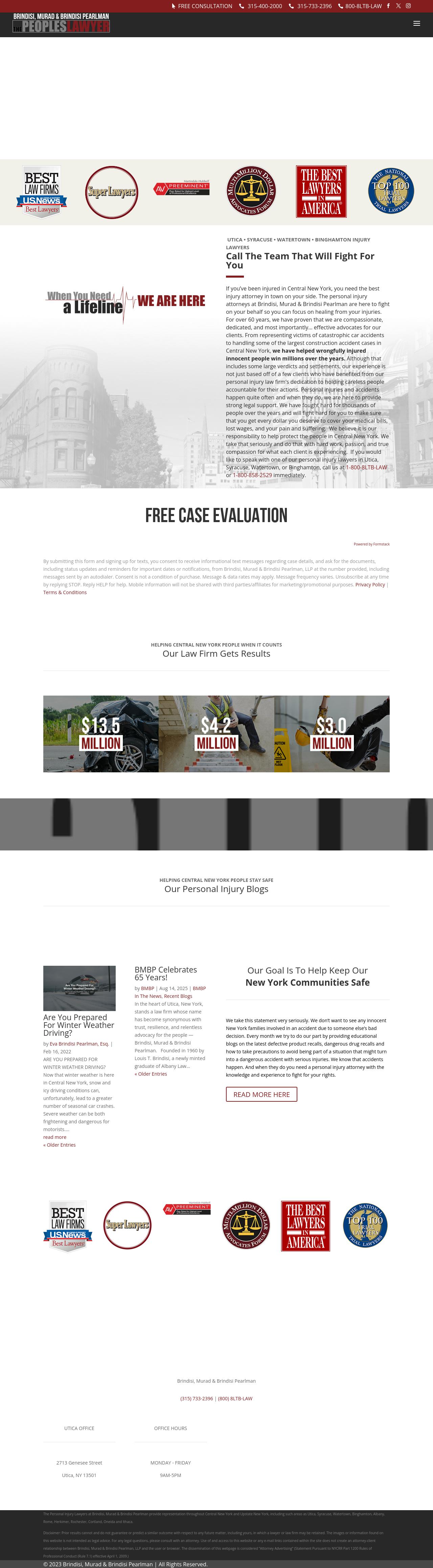 Brindisi, Murad, Brindisi & Pearlman, LLP Utica Personal Injury Lawyer|Brindisi,Murad,Brindisi & Pearlman Utica NY Personal Injury Lawyers at Brindisi,Murad,Brindisi & Pearlman have been guiding clients through the personal injury claims process in Central New York for more than 50 years. They will fight hard to get you all the compensation you deserve. Whether you are in the Utica or Syracuse, if you've been injured in an accident call the Peoples Lawyer at Brindisi,Murad,Brindisi & Pearlman.