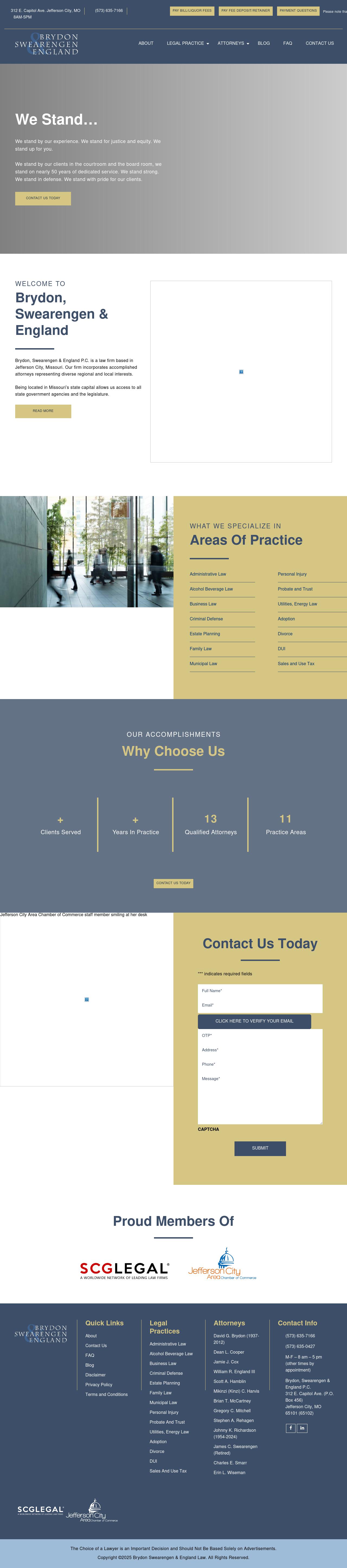 Brydon, Swearengen & England P.C. Jefferson City, Missouri Lawyers | Brydon, Swearengen & England Brydon, Swearengen & England P.C. is a Jefferson City, MO law firm comprised of accomplished attorneys representing diverse regional and local interests.