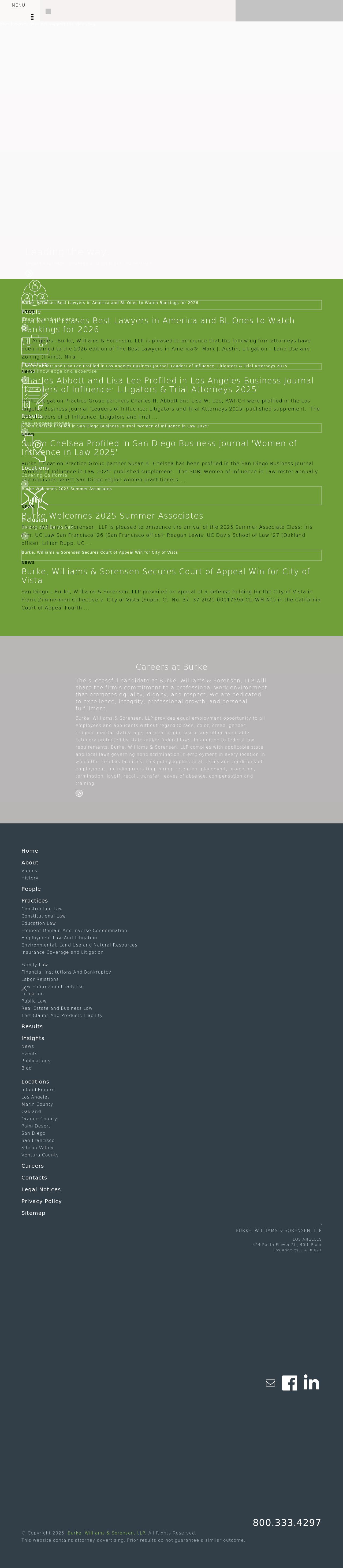 Burke, Williams & Sorensen, LLP Home Page - Burke, Williams & Sorensen, LLP Burke, Williams & Sorensen, LLP serves its clients in the areas of public law, education law, labor and employment law, litigation, and real estate and business from eight offices throughout California.