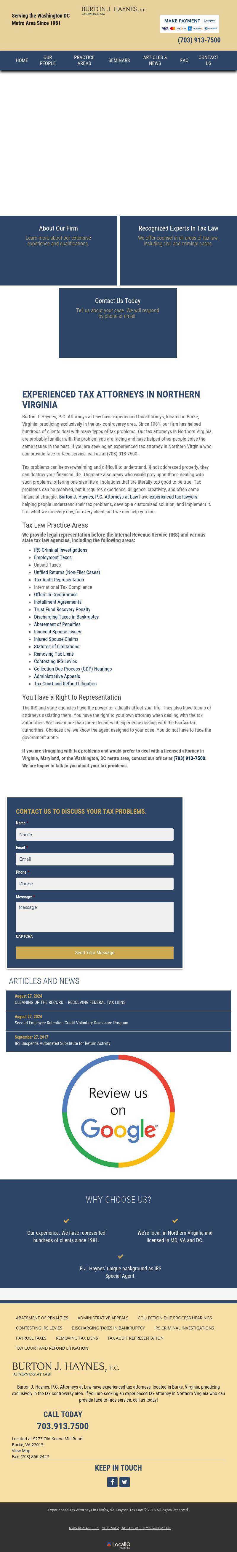 Burton J. Haynes, P.C. BJ Haynes | Tax Attorney in Northern Virginia | Haynes Tax Law Haynes Tax Law assists clients with Complex Tax Problems. BJ Haynes offers legal counsel in all areas of tax law in VA,
