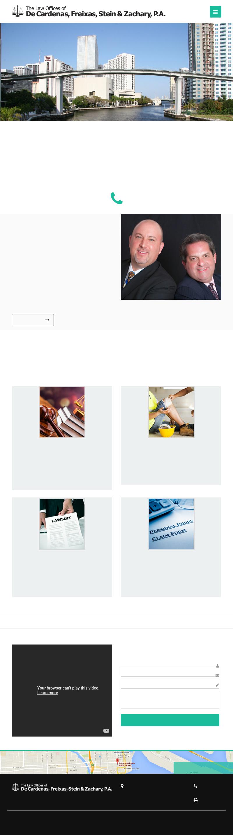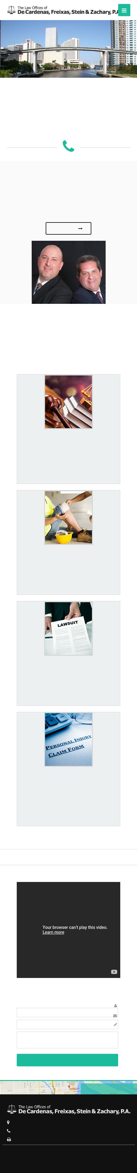 DeCardenas Freixas Stein Et Al. Untitled Document De Cardenas Freixas Stein & Zachary, P.A. has a decades long history of working with injured individuals who have claims against third parties or against their employers for work related injuries. Each claim is handled with individual attention. The attorney assigned to your file will keep you updated on the status of your claim. Our experienced staff is available to answer questions or address problems as they may arise. We have learned that keeping open the lines of communication with our clients and the opposing parties is the best way to achieve the maximum results possible. Our goal is to best protect the interests of our clients.