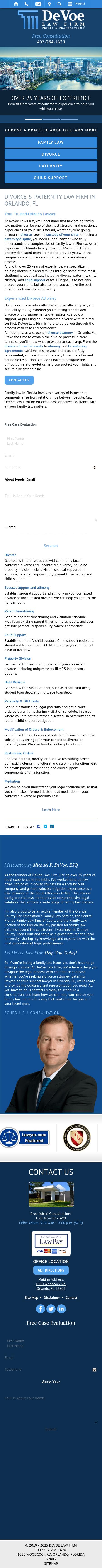 DeVoe Law Firm DeVoe Law Firm | Orlando Divorce and Family Lawyer (407) 284-1620. Get help from an Orlando attorney with divorce, uncontested divorce, child support, custody, timesharing, visitation, family, juvenile, traffic,