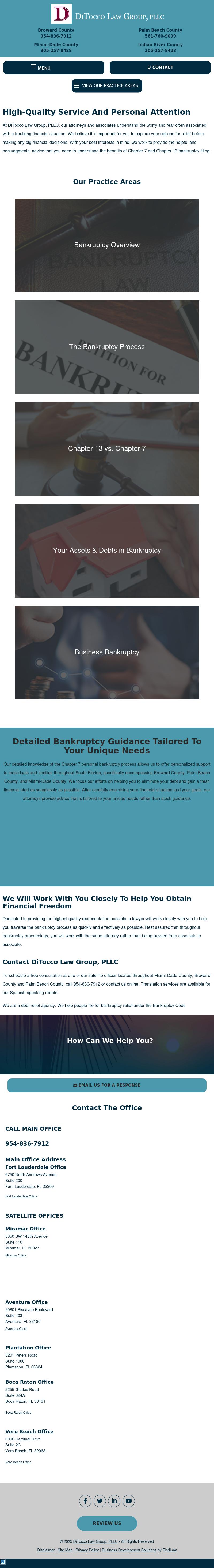 DiTocco Law Group, PLLC Bankruptcy Attorney Fort Lauderdale | South Florida Chapter 7 Lawyer | Miami Debt Relief Law Firm For detailed bankruptcy guidance throughout South Florida call the DiTocco Law Group, PLLC, at 954-566-9000. Miami area office locations in Ft. Lauderdale, West Palm Beach, and elsewhere.