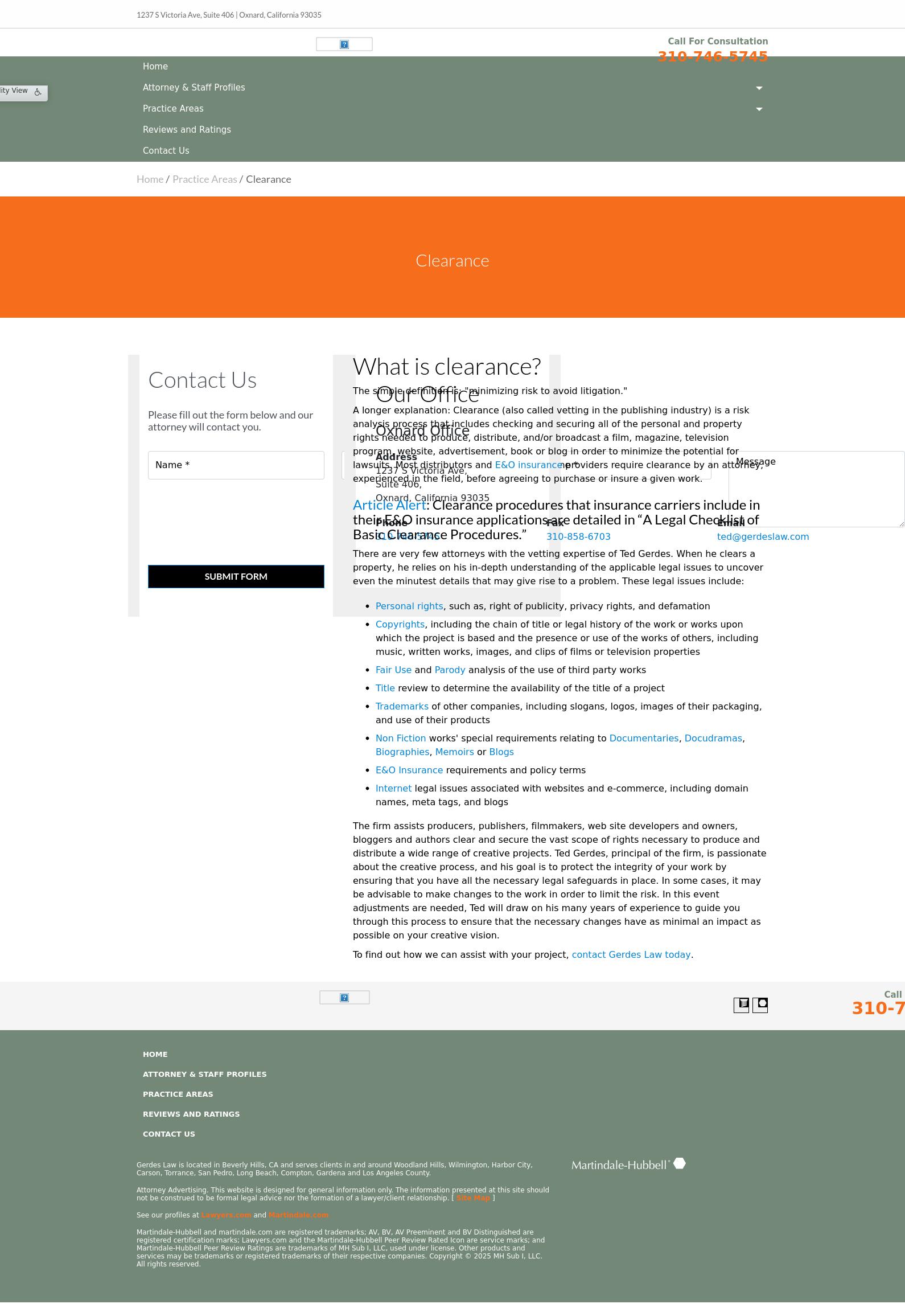 Gerdes Law Hollywood Clearance Lawyers | California Vetting Attorneys | Gerdes Law Beverly Hills law firm Gerdes Law clears films, books, television programs, & websites for copyright, trademark, publicity & privacy rights throughout the United States and worldwide.