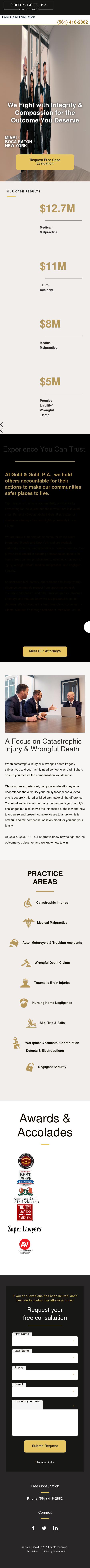 Gold & Gold, P.A. Home | Gold & Gold, P.A. | Florida Trial Attorneys Gold & Gold, P.A. is a premier Florida law firm founded upon the ethical and effective practice of law. Our firm is privileged to represent individuals and their families who experience serious injury or death due to the negligence of others. We specialize in auto, motorcycle and trucking accidents, accidents resulting in brain damage, construction and electrocution accidents, medical malpractice and nursing home negligence, premises liability and negligent security, product liability and wrongful death claims.