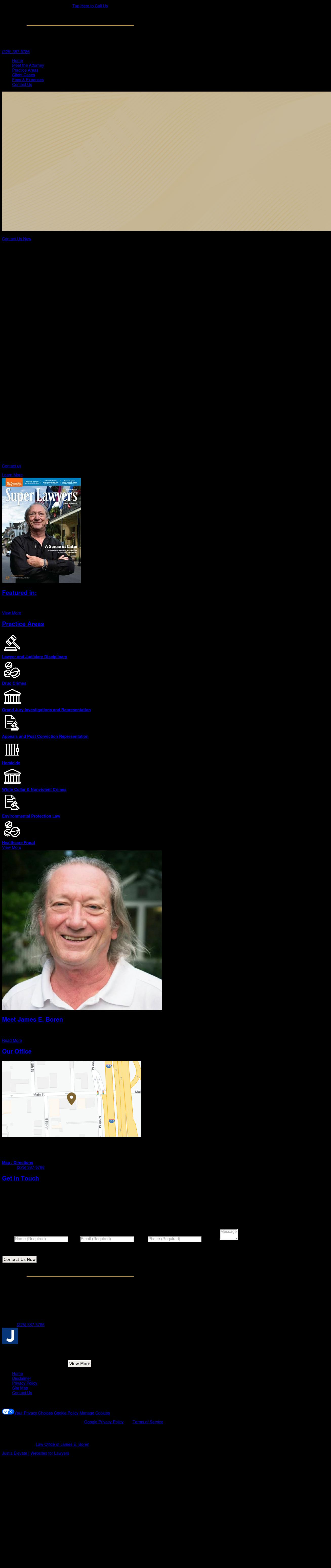 James E. Boren Baton Rouge Criminal Defense Attorney | Louisiana Sex Crime Drug Charge Lawyer | Lafayette LA White Collar Crime Law Firm To speak with Baton Rouge criminal defense lawyer James E. Boren about representation for any state or federal charges, during a confidential consultation, please call 225-387-5786.