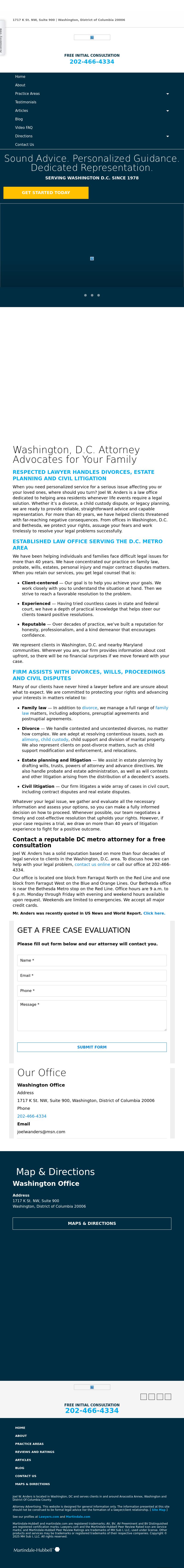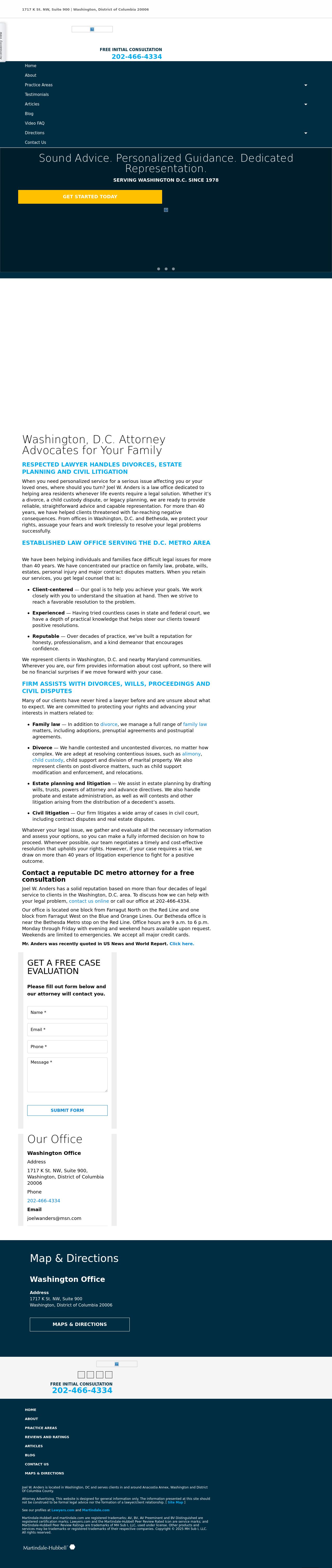 Joel W. Anders, P.C. Washington DC Family Law Attorney | Maryland Criminal Defense Lawyer | Montgomery County DUI Attorney Attorney Joel W. Anders, in Washington, D.C., handles family law, conservatorship and criminal defense matters. Free consultations. Call 202-644-9609.
