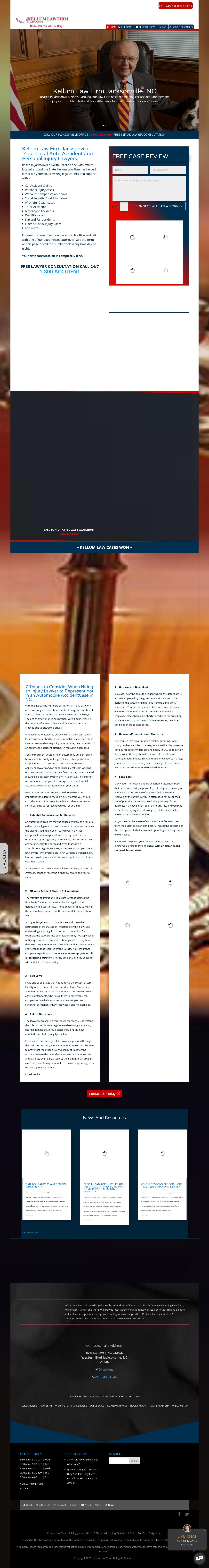 Kellum Law Firm Jacksonville Kellum Law Firm Jacksonville Our team of experienced Personal Injury Lawyers and Legal Professionals have helped folks in North Carolina for over 40 years with Personal Injury claims, Workers’ Compensation, Social Security Disability, Wrongful Death, Truck Accidents, Motorcycle Accidents, Slip and Fall, Medical Malpractice Cases and more.