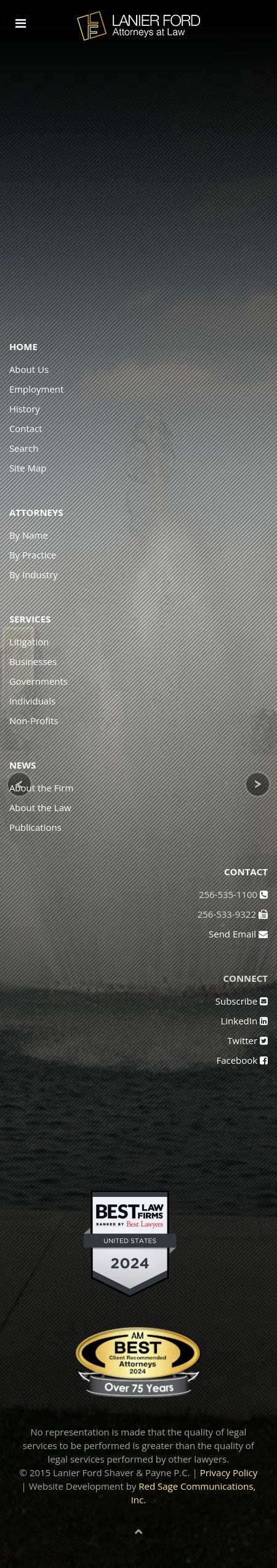 Lanier Ford Shaver & Payne PC Lanier Ford Law Firm Huntsville Alabama Lanier Ford Shaver & Payne P.C., the largest law firm in northern Alabama, represents businesses, corporations, individuals, and county and municipal governments in state and federal courts.