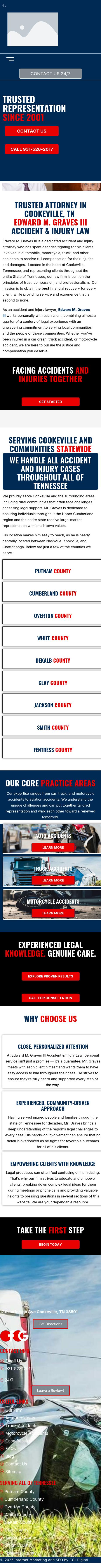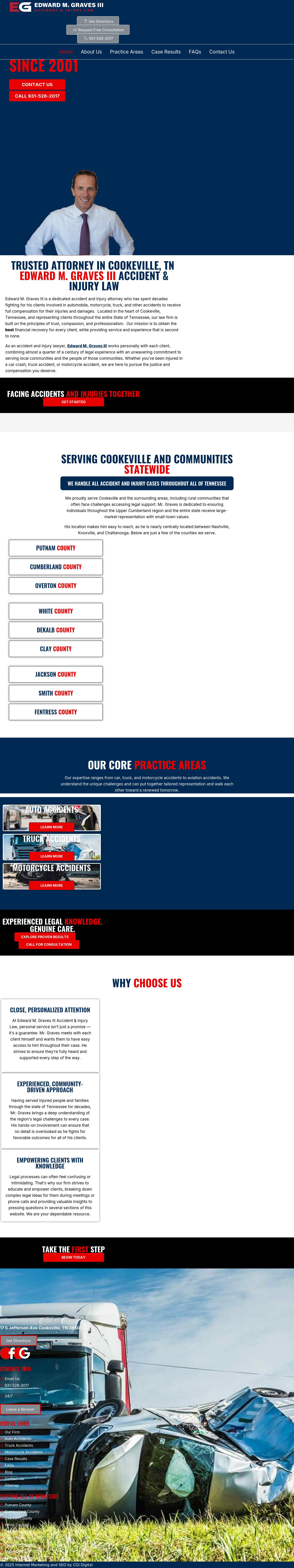 Law Office of Edward M. Graves III Graves :: ACCIDENT & INJURY ATTORNEYS :: Home GRAVES LAW FIRMS, KNOXVILLE COOKEVILLE TENNESSEE: ACCIDENT & PERSONAL INJURY ATTORNEYS, WRONGFUL DEATH, MOTOR VEHICLE ACCIDENT LAWYERS (CAR, TRUCK, AND MOTORCYCLE WRECKS)