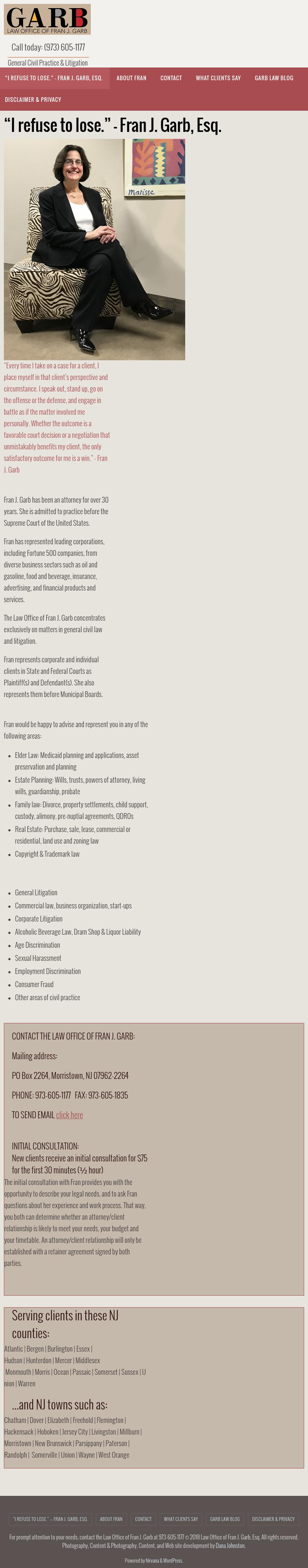 Law Office of Fran J. Garb Attorney Profile <title>Fran J. Garb, Esq. Elder Law, Business Law Attorney in Morris County New Jersey</title><meta name="description" content="Ms. Garb has been an attorney for over 20 years.She has represented corporate and individual clients including Fortune 500 co">