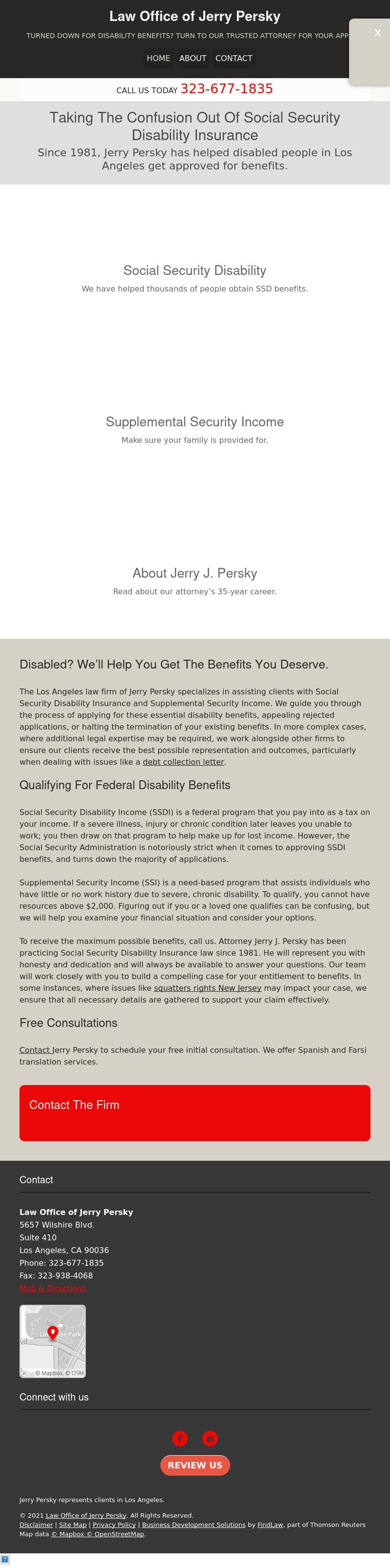 Law Office of Jerry Persky Los Angeles Social Security Disability Benefits Attorney | Los Angeles County SSI Benefits Lawyer | Santa Monica SSDI Attorney Turned down for SSDI or SSI? Call 800-493-1449 for a free consultation with Los Angeles Social Security Disability benefits attorney Jerry Persky.