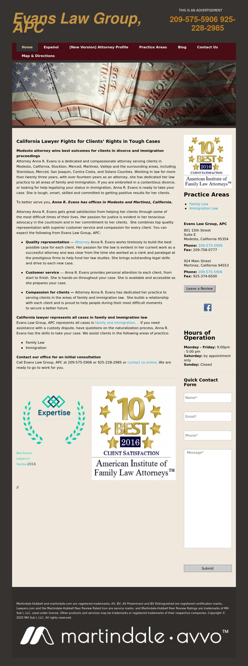 Law Offices of Anna R. Evans Anna R. Evans - Modesto, California Family Law, Immigration Law and Bankruptcy Law Attorney | Anna R. Evans, Attorney at Law Anna R. Evans, Attorney at Law in Modesto, California offers a free consultation to clients in bankruptcy, immigration and family law matters.