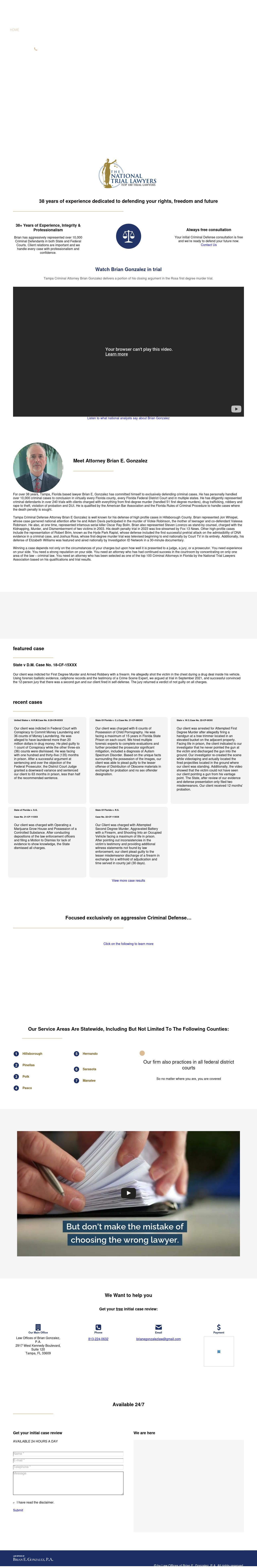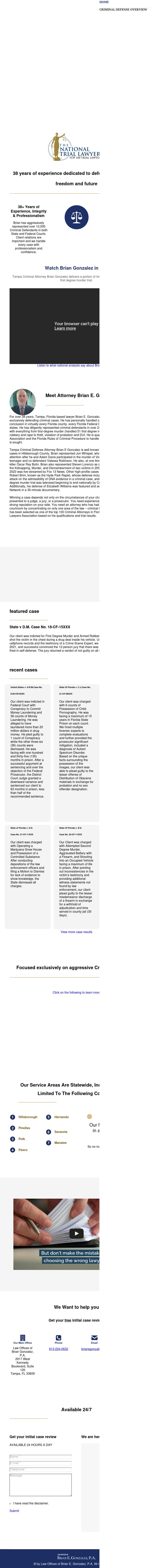Law Offices of Brian E. Gonzalez, P.A. Tampa Criminal Defense Attorney | DUI DWI Lawyer | Drug Crimes Attorney No matter the charge, a Tampa criminal defense lawyer at the Law Offices of Brian E. Gonzalez, P.A., can defend you. Free consultation.