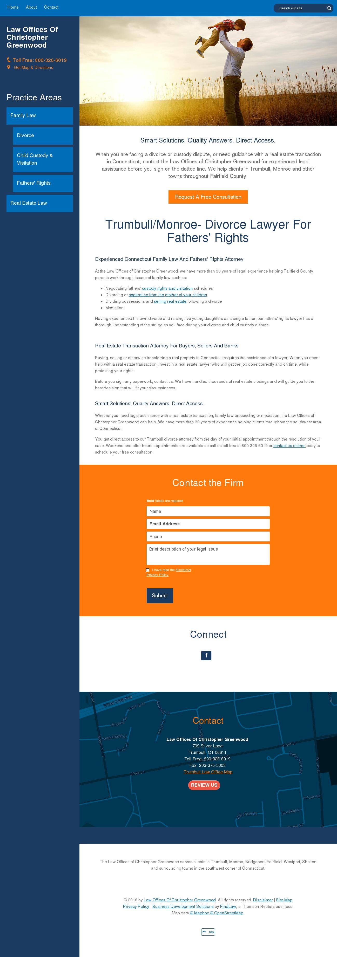 Law Offices Of Christopher Greenwood Trumbull Divorce Attorney | Fathers' Custody Rights Call the Law Offices of Christopher Greenwood at 800-326-6019 for real estate solutions and help with issues of fathers' rights in Connecticut.