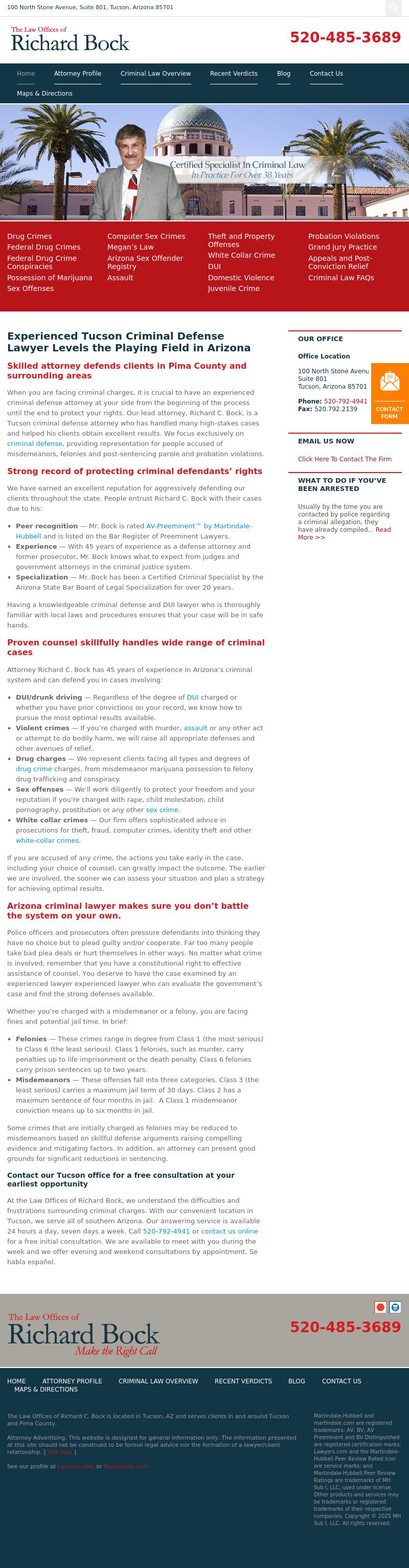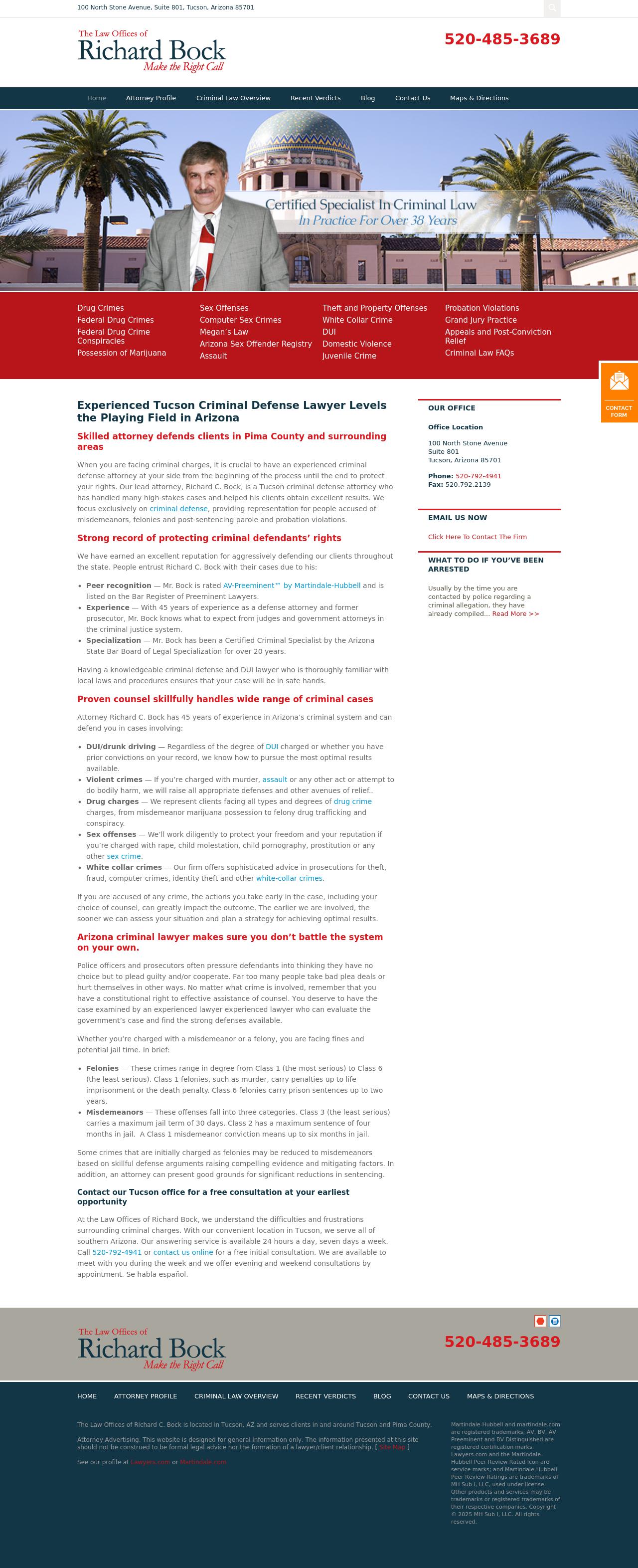 Law Offices of Richard Bock Tucson Criminal Defense Lawyers | DUI & Drug Crimes Lawyers in Arizona at the Law Offices of Richard Bock When you are facing criminal charges in Tucson , it is crucial to have an experienced criminal defense attorney at your side. Consult the Law Offices of Richard Bock today.