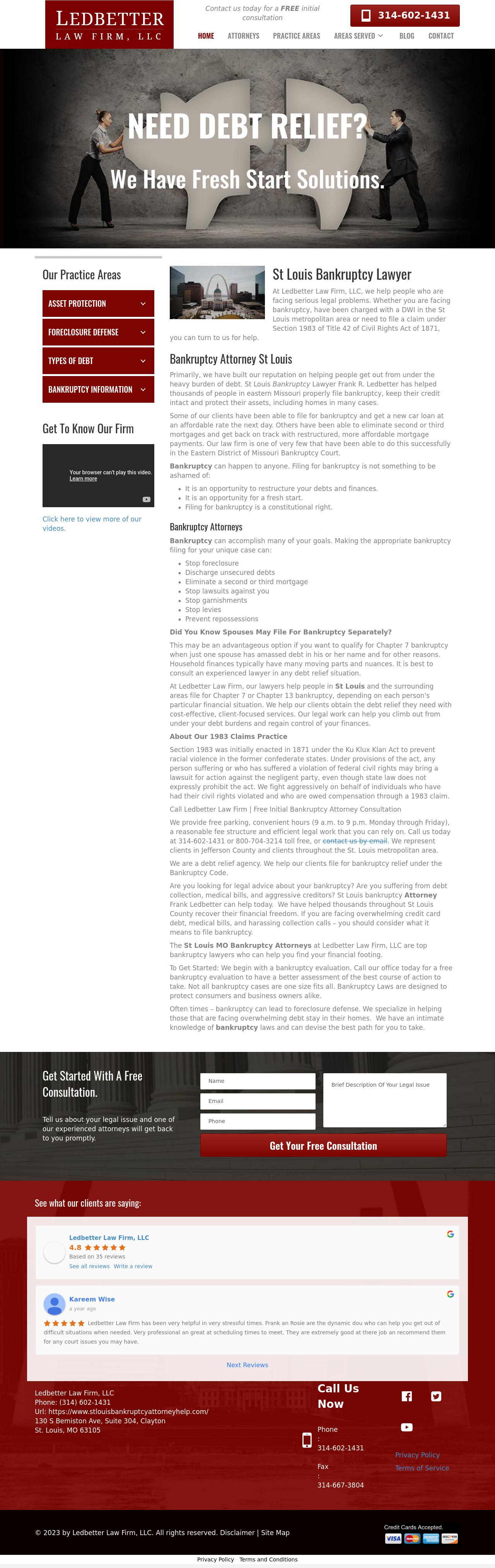 Ledbetter Law Firm, LLC St. Louis Bankruptcy Lawyer | Chapter 13 Attorney Jefferson County MO Is crushing debt holding you back? Need to stop foreclosure? Our St. Louis bankruptcy lawyers can help. Call Ledbetter Law Firm, LLC, at 800-704-3214.