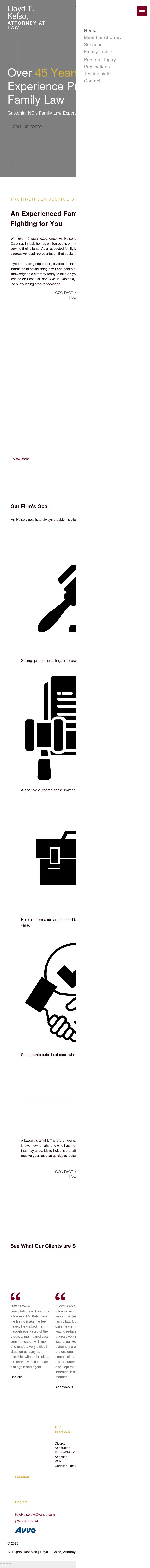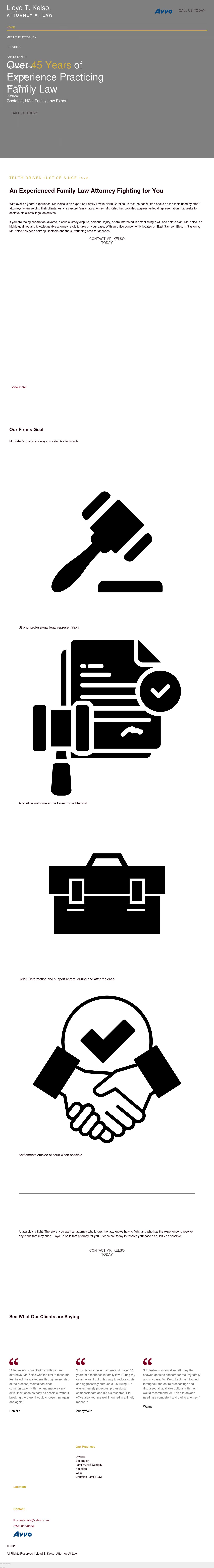 Lloyd T. Kelso, Attorney at Law Lloyd T. Kelso, Attorney at Law - Is Lloyd Kelso Right For You?35 Years of Experience Practicing LawSelected in 2014 by the American Society of Legal Advocates as one of the \"Top 100 Family Law Attorneys\" in the State of North CarolinaRated \"Superb\" 10.0/10.0 by www.avvo.comCertified as a