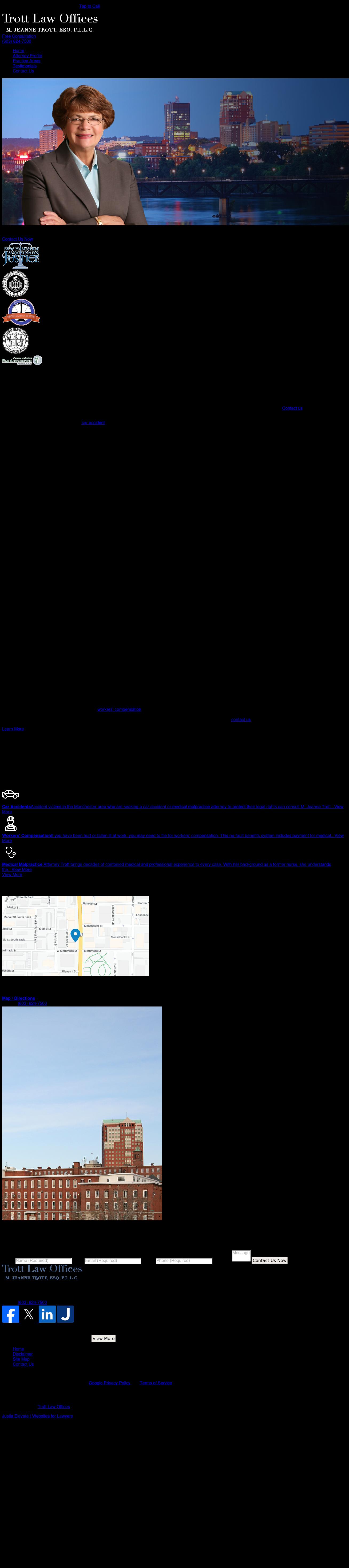 M. Jeanne Trott New Hampshire Personal Injury Lawyer - Manchester Accident Attorney - Trott Law Offices Free Consultation - Call (603) 624-7500 - Trott Law Offices helps victims and their families receive compensation for their injuries in Personal Injury and Accident cases.