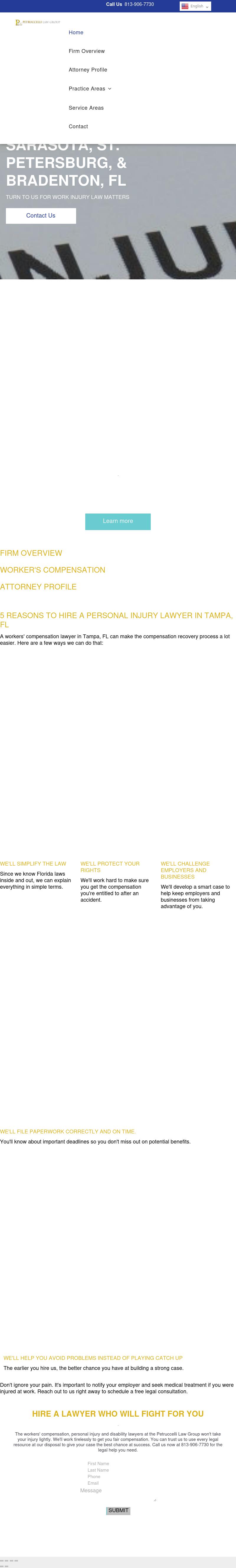 Petruccelli Law Group Tampa Workers Compensation Attorneys | St Petersburg Workers Comp Lawyers | Clearwater FL Workplace Injury Law Firm If you need a Tampa workers' compensation attorney, contact a member of the Petruccelli Law Group in Florida today. Free consultation.