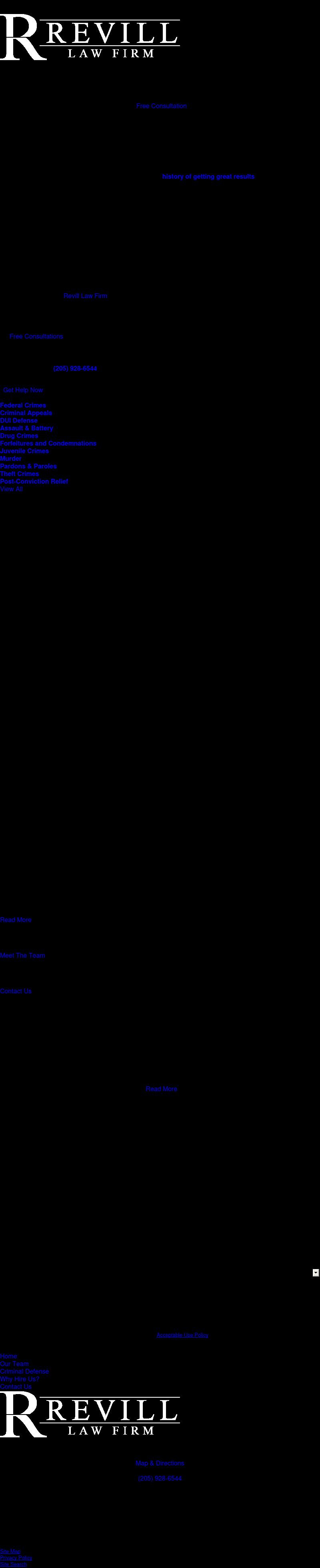 Revill Law Firm Revill Law Firm | Birmingham, Alabama Revill Law Firm serves Birmingham, Alabama in the areas of criminal defense, civil rights, family law, employment law, and personal injury.