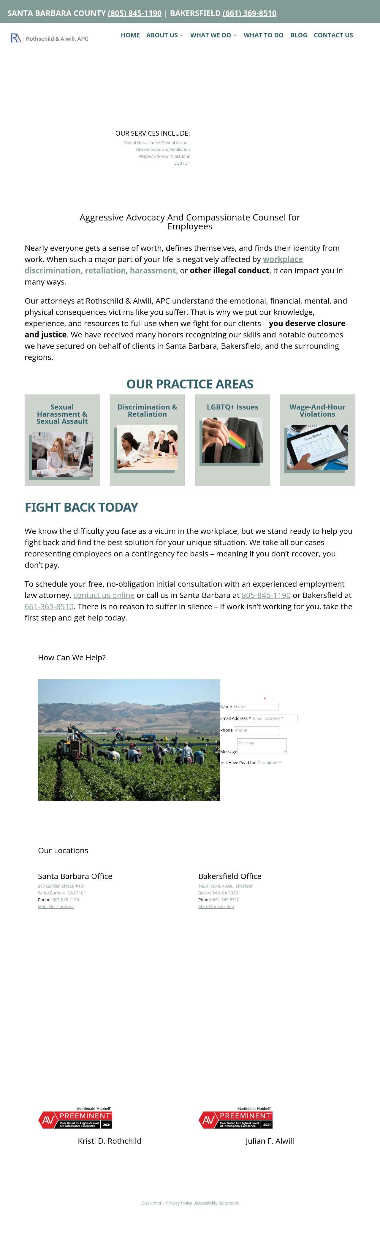 Rothschild & Alwill, APC Santa Barbara Employment Lawyers | Employee Rights | Labor Law Firm Based in Santa Barbara and Bakersfield, California, Rothschild & Alwill, APC, represents employees and employers. Call 805-845-1190 to learn more.