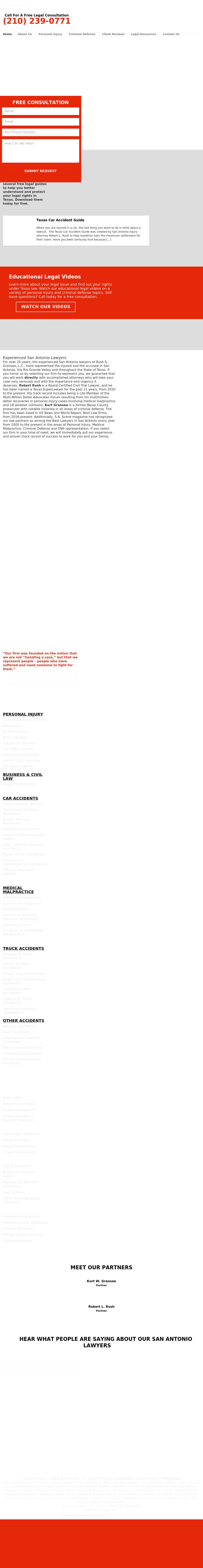 Rush & Gransee, L.C. San Antonio Personal Injury & Criminal Defense Law Firm The personal injury and criminal defense lawyers of Rush & Gransee have served San Antonio and South Texas for 20 years. Free consultation at 210-807-8165.