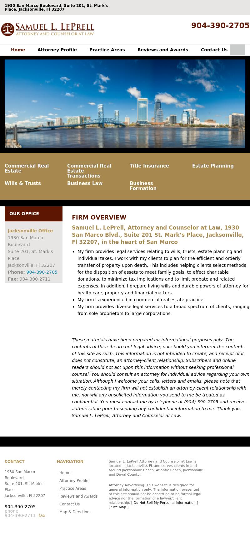 Samuel L. LePrell, Attorney and Counselor at Law Samuel L. LePrell, Attorney and Counselor at Law Provides information on the law practice of Samuel L. LePrell in Jacksonville, Florida including info on real estate, personal and business services.