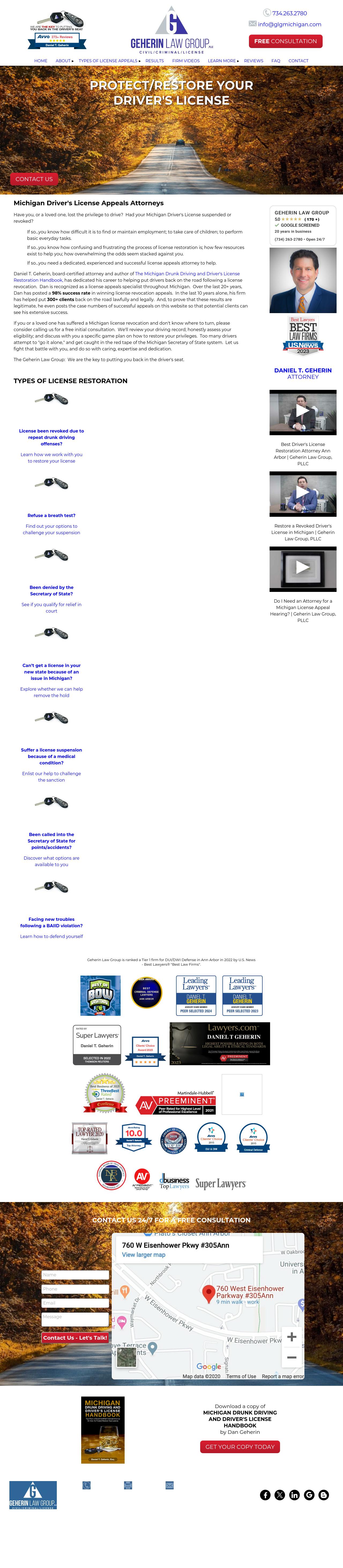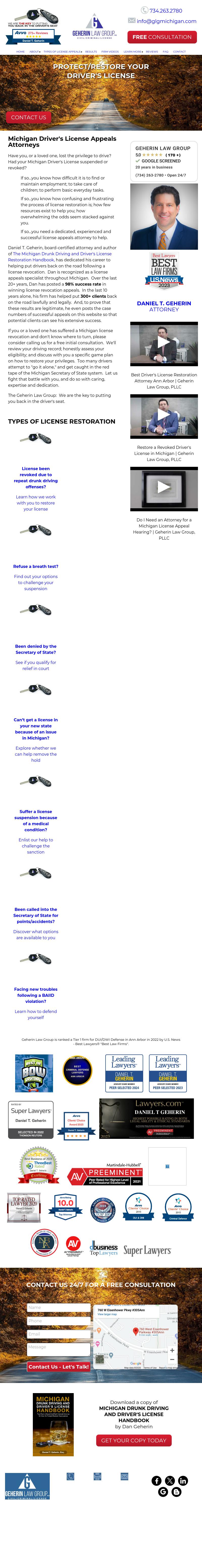 Simon & Geherin, PLLC Michigan Drivers License Attorney | Ann Arbor MI License Restoration Lawyer | Detroit Drivers License Suspension & Revocation Law Firm Has your Michigan driver's license been revoked or suspended? Contact the license restoration specialists at Simon & Geherin, PLLC at 734-997-0870.