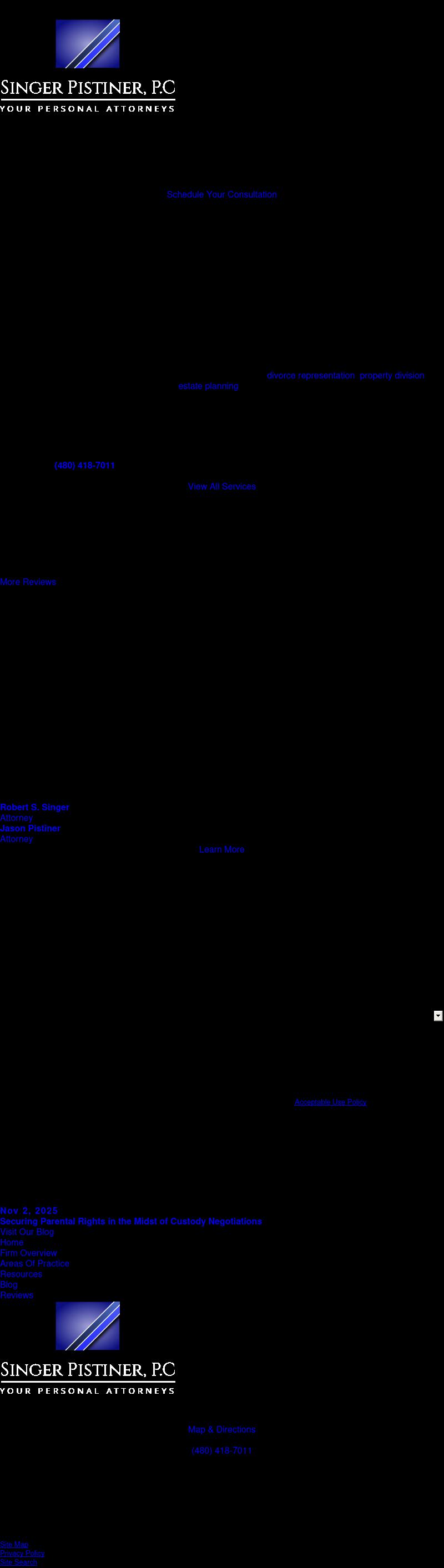Singer Pistiner, P.C. Scottsdale, Arizona Divorce, Family Law and Estate Planning Attorneys | Singer Pistiner, P.C. Singer Pistiner, P.C. is composed of experienced family law and divorce attorneys serving Phoenix , Glendale, Surprise, Scottsdale, Tempe, Chandler and Mesa, Arizona.