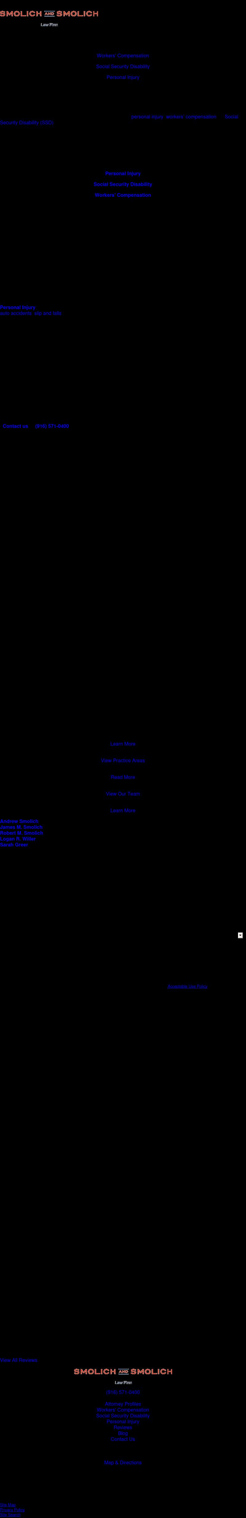Smolich & Smolich Sacramento Workers Compensation Lawyer | Social Security Disability Our trusted Sacramento workers compensation lawyers have served Northern California since 1969. Free case evaluation: 916-443-2988. Let our experience help you today!
