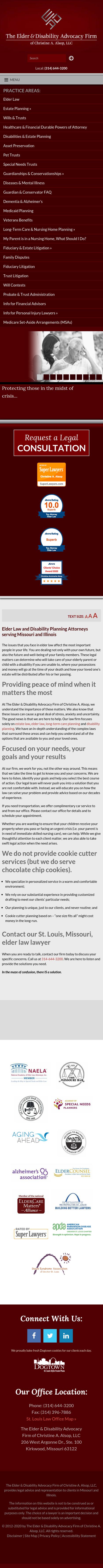 The Elder & Disability Advocacy Firm of Christine A. Alsop, LLC St. Louis Estate Planning Attorney | Missouri Elder Law Lawyer The lawyers at The Elder & Disability Advocacy Firm of Christine A. Alsop, LLC, in St. Louis, have the experience to meet your needs. Call 314-499-2116.