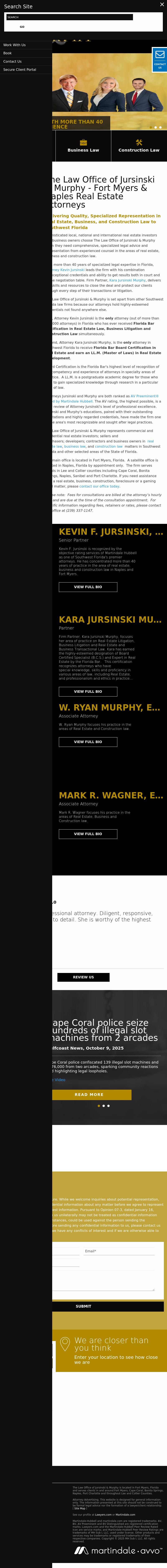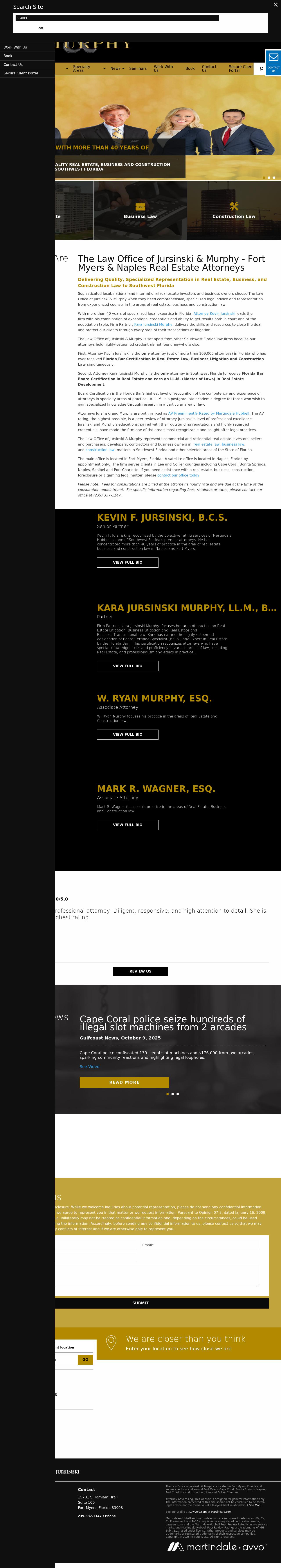 The Law Office of Kevin F. Jursinski, P.A. Fort Myers and Naples Florida Business, Real Estate & Construction Law Attorneys - The Law Office of Kevin F. Jursinski & Associates Sophisticated business and property owners choose Ft. Myers, Florida Law Office of Kevin F. Jursinski & Associates when they need legal advice and representation from experienced counsel who understand business.