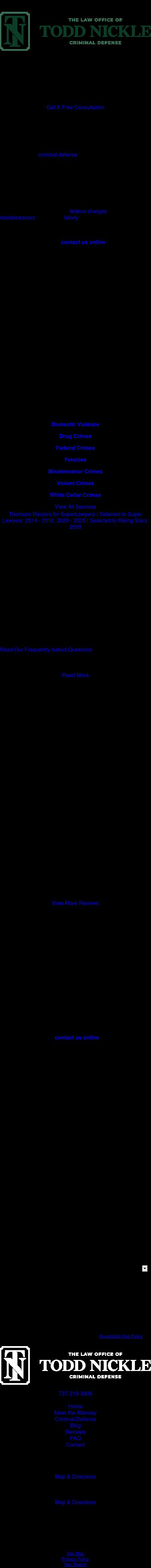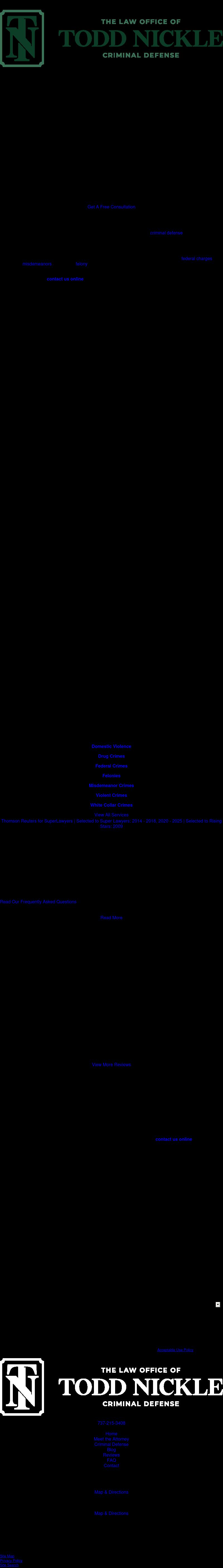 The Law Office of Todd Nickle Austin TX Criminal Defense Attorney | Williamson County TX DWI Assault Fraud Lawyer Todd Nickle, Attorney at Law, is an experienced criminal defense attorney in the Austin, Texas area. He handles cases including DWI, drug crimes, white collar crimes,and serious violent felonies and property crimes. Call 512-478-5550.