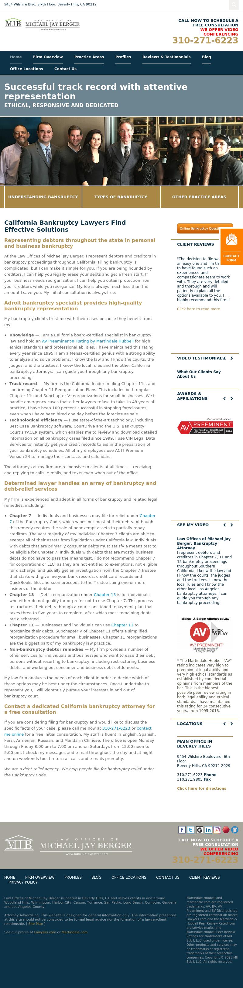 The Law Offices of Michael Jay Berger Los Angeles Bankruptcy Lawyers | California Chapter 7, 11 & 13 Bankruptcy Attorneys The Los Angeles bankruptcy lawyers at MJB Law Group are certified bankruptcy specialists in Chapter 7, Chapter 11, and Chapter 13, stopping bankruptcy in Southern California, San Fernando Valley, & Riverside.