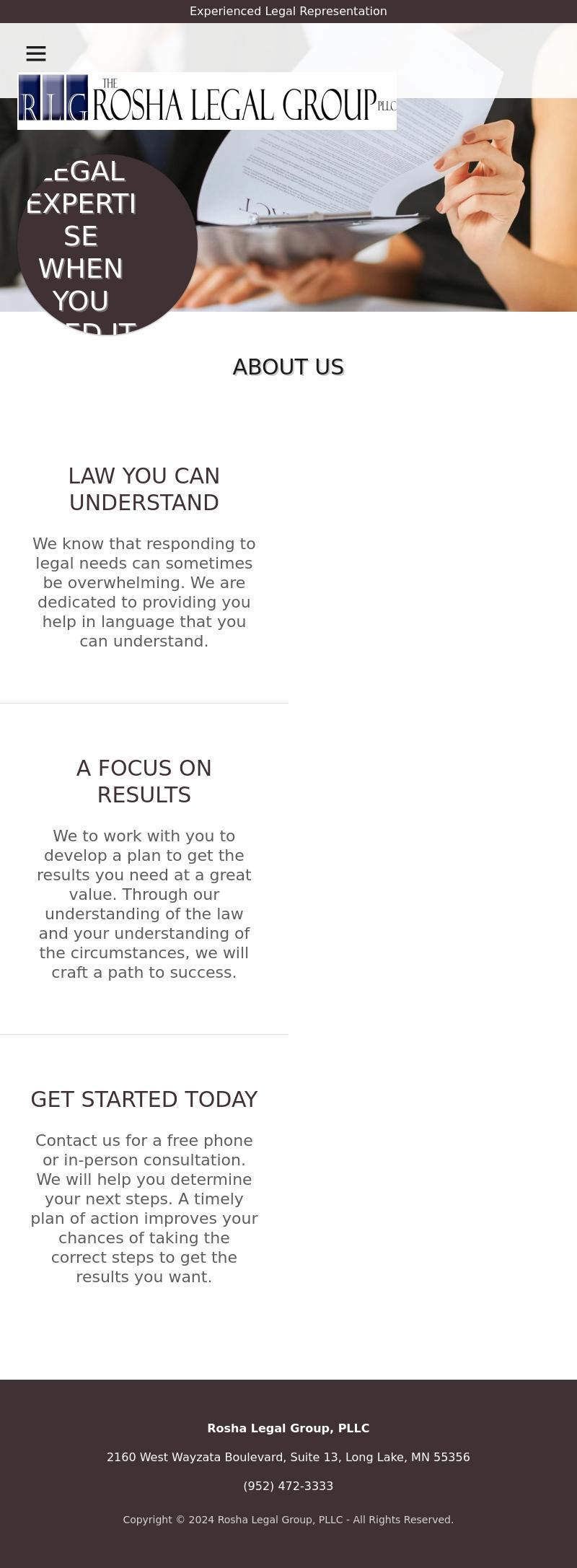 The Rosha Legal Group, P.L.L.C. Minnetonka Probate Attorney | Long Lake MN Estate Planning Lawyer The Rosha Legal Group, P.L.L.C., provides high-quality estate planning and business law assistance in Minnesota. Call us at 952-641-7305 today.