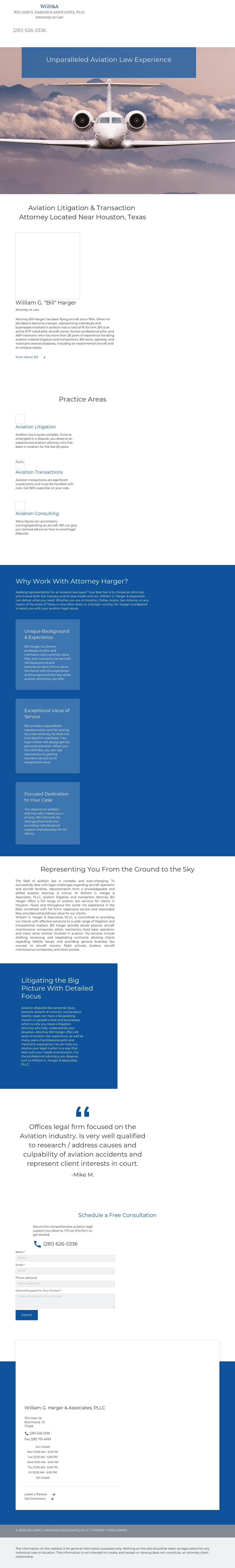 William G. Harger & Associates, PLLC Texas Aviation Law Attorney | Houston TX Aviation Litigation Lawyer | Aviation Attorney Free consultation with a Texas aviation law lawyer. Call William G. Harger & Associates, PLLC, at 281-202-6000.